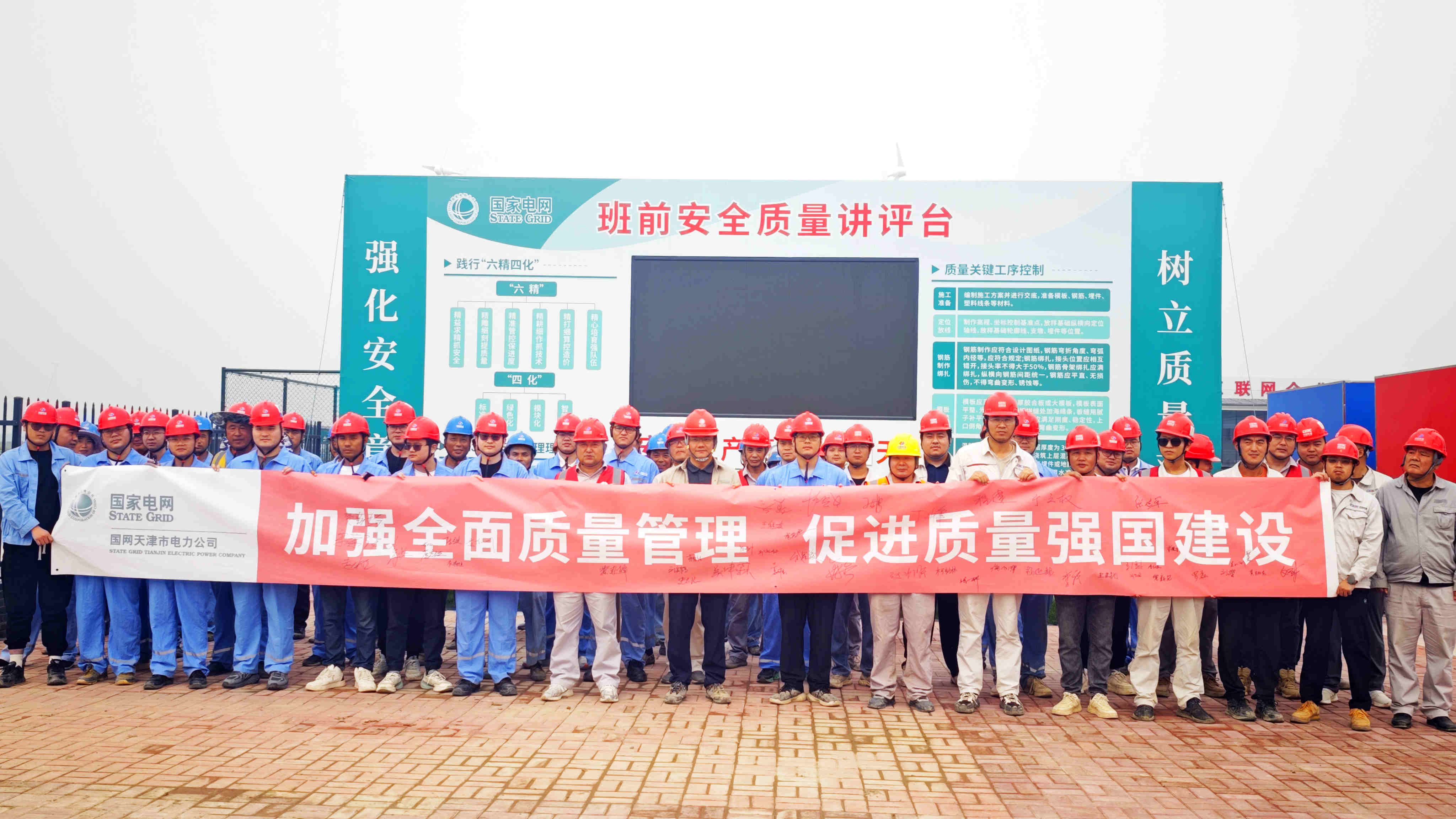 9月14日,天津北1000千伏变电站项目部紧扣“加强全面质量管理 促进质量强国建设”活动主题,启动2025年“质量月”活动,以多元举措夯实工程质量根基,护航项目建设稳步推进。 启动仪式上,项目负责人带领全体员工深入学习全国质量月重要部署及公司相关文件精神,全面部署质量月重点工作,细化责任分工与实施路径。项目部要求全员树牢要求全体员工要进一步强化质量意识,要以高标准、严要求夯实工程质量,为项目优质履约提供坚实保障。随后,全体员工在横幅上郑重签名,以笔尖承诺践行建设使命。技术员小宋感慨道:“我们要将精益求精的工匠精神融入每一个环节、每一道工序,共同推动项目质量管理工作再上新台阶。” 下一步,项目部将紧扣活动方案,系统开展质量隐患排查治理等相关行动,推动质量月各项要求落地见效,切实将活动成果转化为工程品质提升的硬核保障。 |